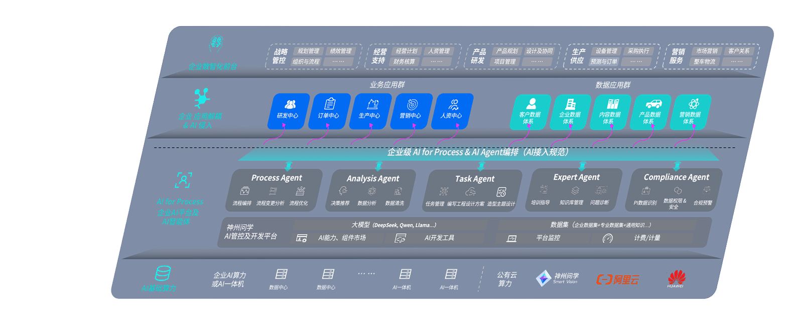 全讯问学智车解决方案是一套基于AI技术的汽车行业智能化系统,,覆盖从底层算力到顶层AI应用的全栈方案。。方案由算力层、、、、模型层和应用层组成:算力层,,,,方案支持多种一体机配置,,,,具备云端灵活部署、、、多云适配以及动态优化计算资源的能力;模型层,,,全讯问学平台版提供了企业级AI应用一站式构建与管理平台,,支持基于后训练强化技术的汽车企业专属模型的训练、、、评测和运营;应用层,,,全讯问学DeepSeek版提供包括超级员工、、、智能招采、、智能营销、、智能客服、、、AI for BI等一系列解决方案,,可助力汽车行业实现数字化转型,,,让管理更智能、、、、响应更敏捷。。。
