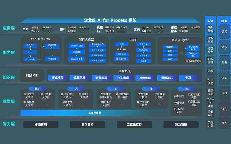 端到端的一站式AI工作空间深度融合了从企业战略规划到日常经营的全流程业务板块,,,,定向解决车企内部领域多、、、、部门多、、、、链条长、、、、场景碎片化等难题,,,支持车企快速构建以AI为核心的生产力写作体系,,,,实现任务执行与AI能力的无缝集成与交互